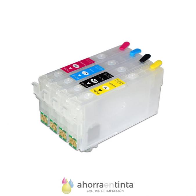 Cartuchos recargables vacíos transparentes con chip autoreseteable. 4 colores: