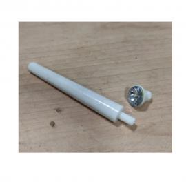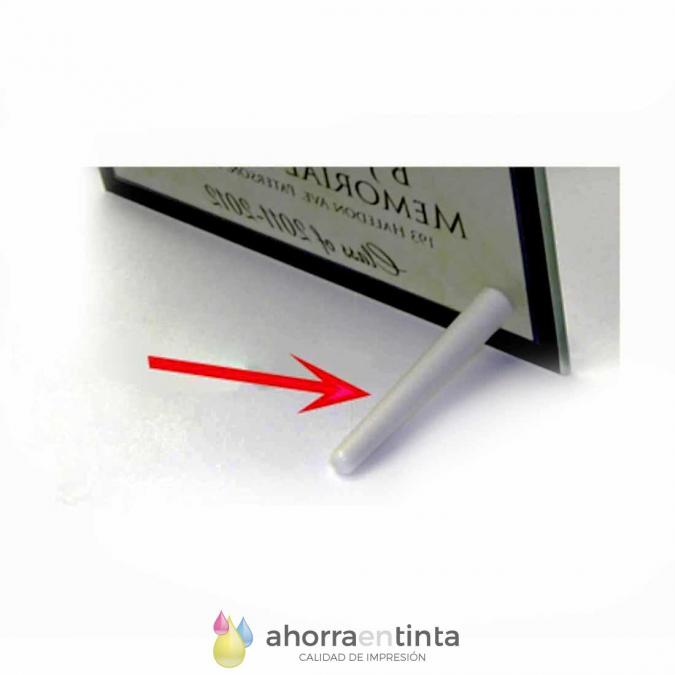 Soporte de plástico de dos piezas enroscables para sujeción de marcos de fotos de cristal con orificio a tal efecto.