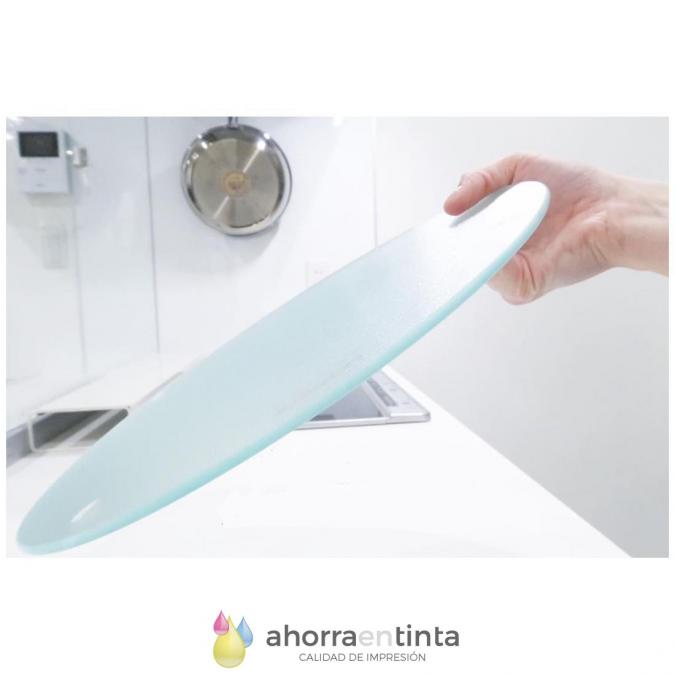Vidrio templado de gran dureza, que incluso podemos utilizar como tabla de cortar en nuestra cocina.