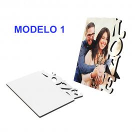 Porta retratos para sublimar, fabricado en fibras de madera MDF, con soporte de sujeción y esquinas redondeadas