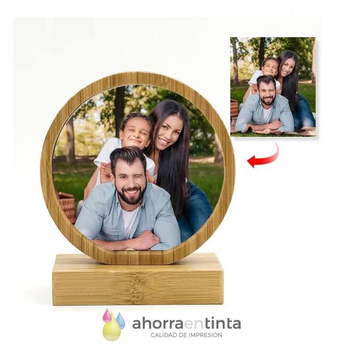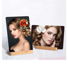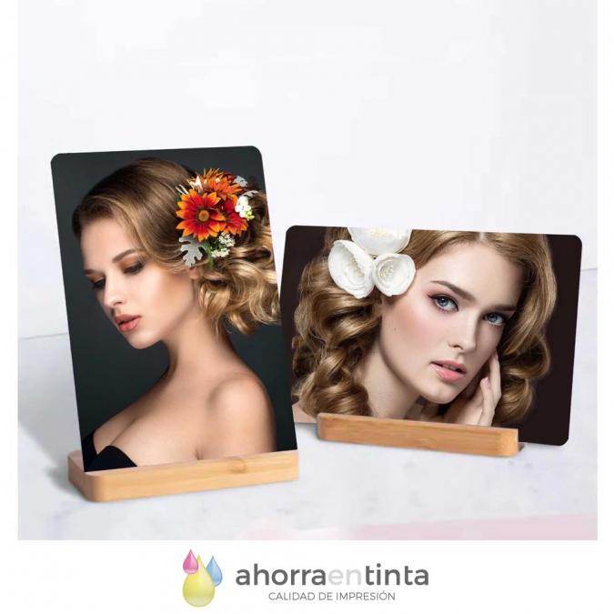 Portaretratos compuesto de panel de aluminio HD sublimable + peana de madera bambú