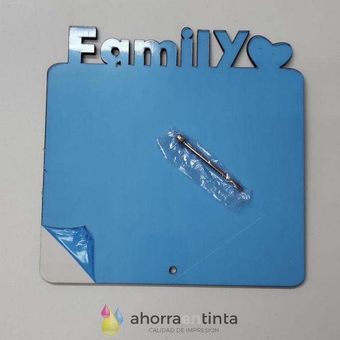 Porta retratos para sublimar, fabricado en fibras de madera MDF, con soporte de sujeción y borde en forma aserrada