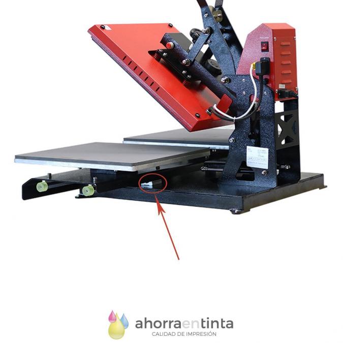 Soporte para el deslizamiento de las barras de acero que aguantan el plato inferior extraíble de nuestra prensa térmica neumática NX4