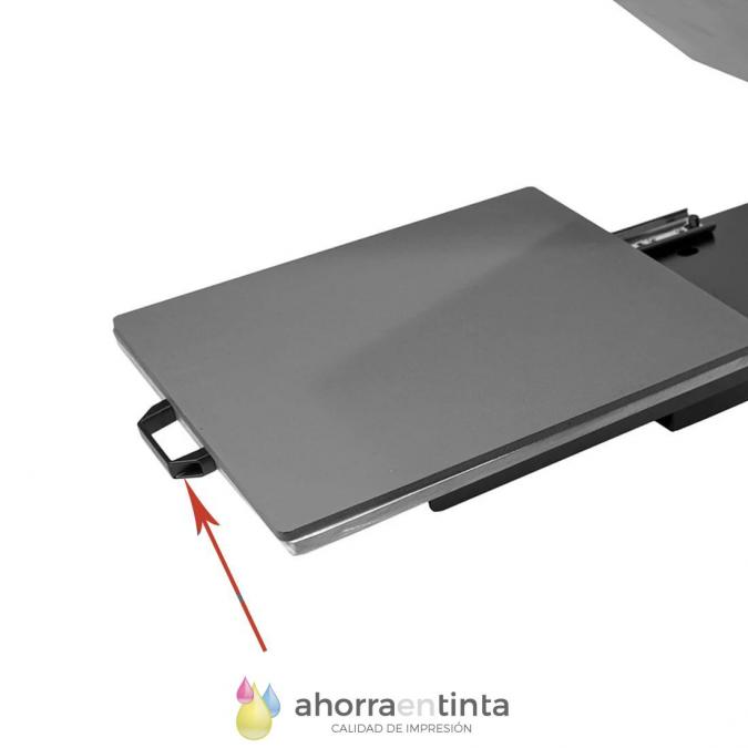 Asa de plástico atornillada al frontal de los platos extraíbles de nuestras prensas térmicas