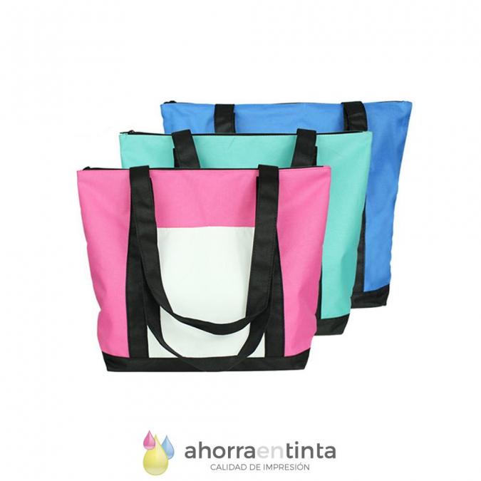 Bolsa de non-woven de 95g/m2 en color blanco especialmente diseñada para marcaje en sublimación. Con asas integradas y acabado termosellado.