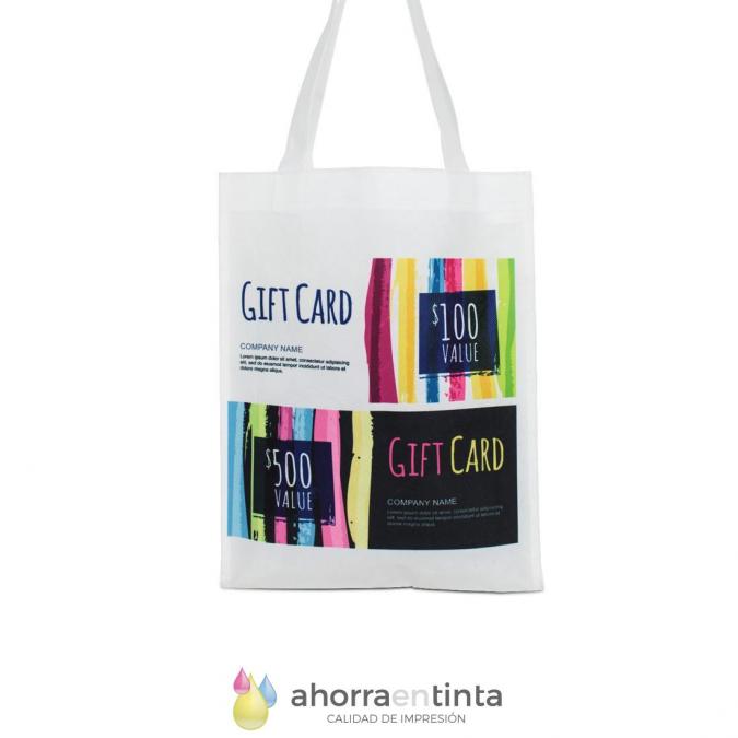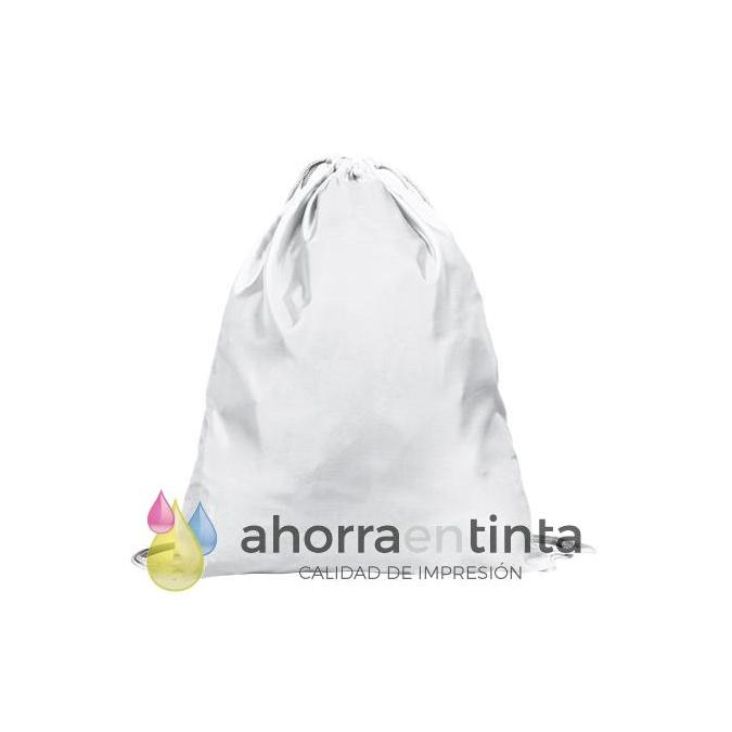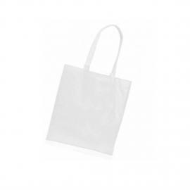 Bolsa de non-woven de 80g/m2 en color blanco especialmente diseñada para marcaje en serigrafia. Con asas largas de 68cm y acabado termosellado. Resistencia hasta 5kg de peso.