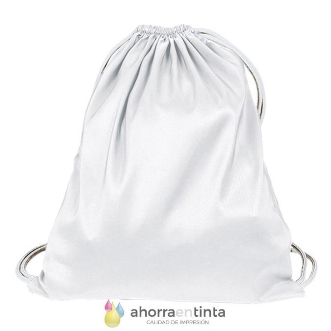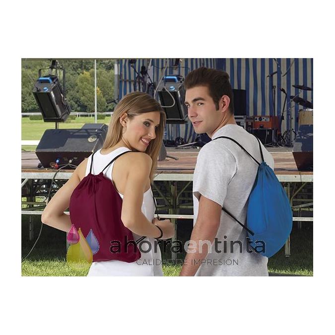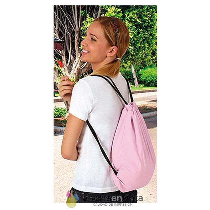 Pequeña mochila fabricada en tejido a la plana, ligera y de tamaño reducido. Con cordón cosido en las esquinas del bajo, que hace la función de cierre y de asas para llevarla a la espalda. Disponible en un completo surtido de colores. Ideal para llevar pequeños objetos de poco peso. Medidas: Niño: 27*35 cm; Adulto: 38*45 cm