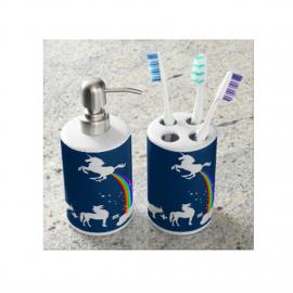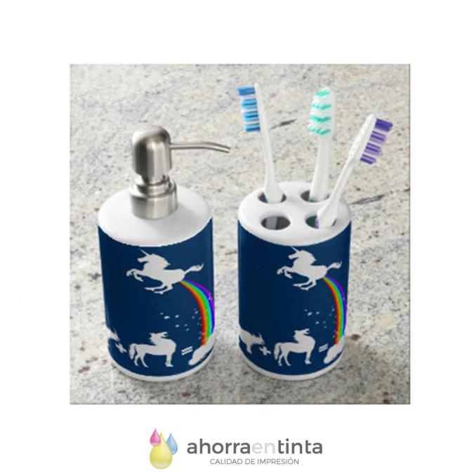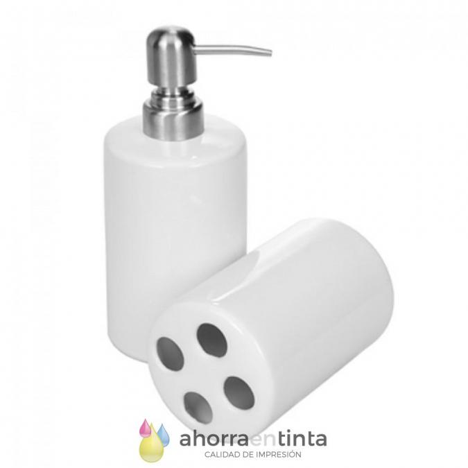 Juego de dispensador de jabón y porta cepillos en cerámica sublimable
