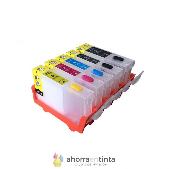 Cartuchos rellenables vacios con chips autoreseteables validos para impresoras de pequeño formato A4, A3 y A3+.