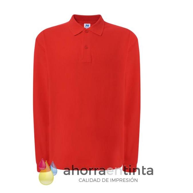 Polo piqué para hombre de manga larga con puños, 100% algodón. Etiqueta removible.