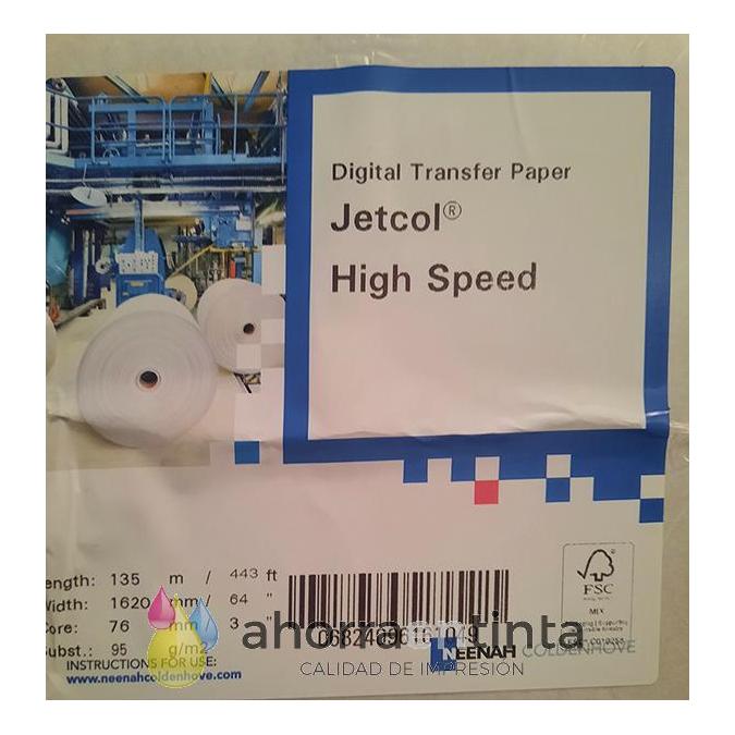 Papel sublimación 95 gr en bobina de 162 cm (64”) x 135 mts Jetcol HIGH SPEED