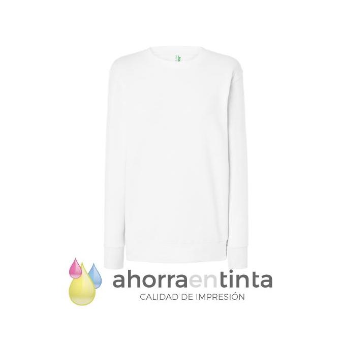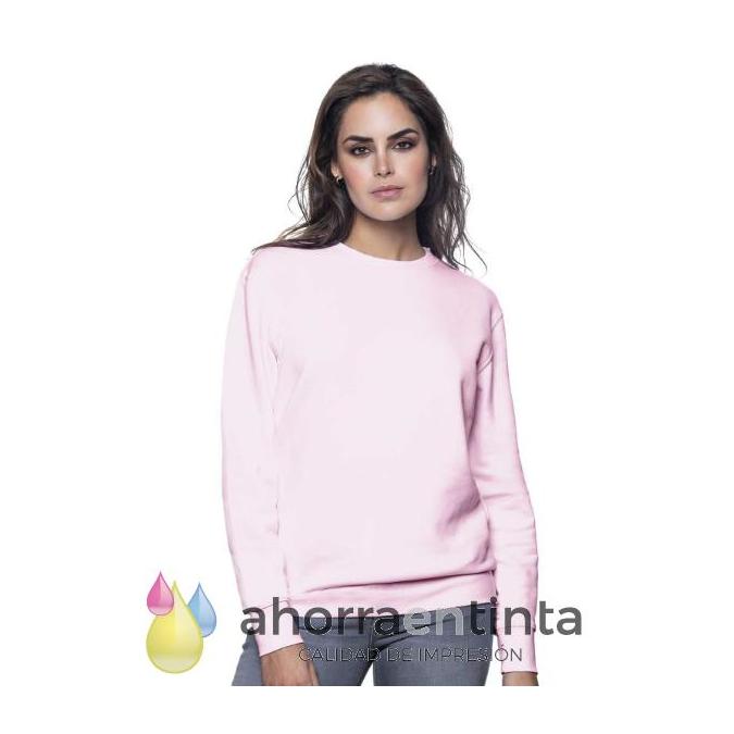 Sudadera de algodón CVC (80% Algodón / 20% Poliéster) para mujer con cuello redondo perfecta para personalizar. Disponible en 6 colores desde la talla S hasta la XXL.