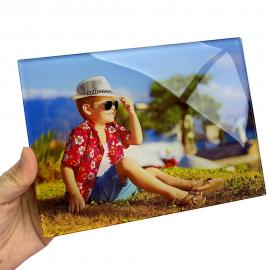 Piezas de plástico acrílico translúcido, con cantos redondeados, sublimables por una cara acompañadas de pieza de imán autoadhesiva.