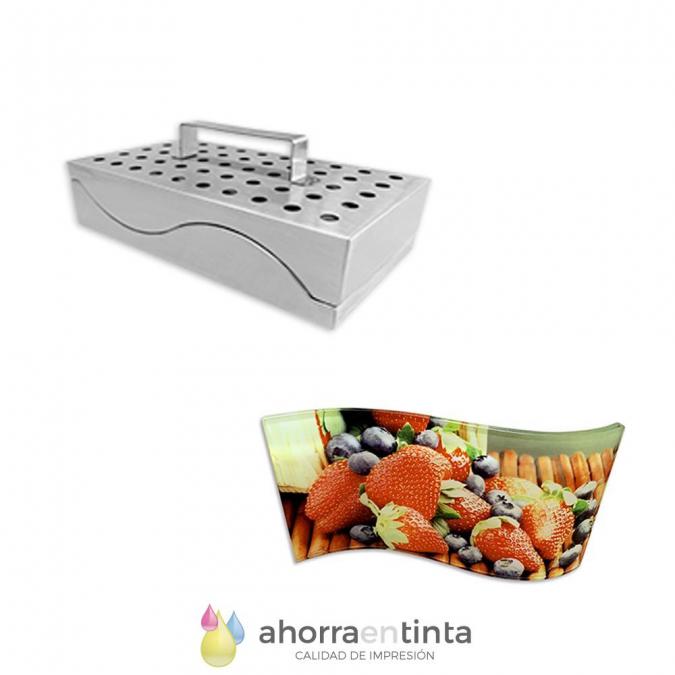 Con este molde se consigue arquear las láminas de metacrilato, una vez sublimadas, para darles un original aspecto y poderlas colocar sobre superficies sin necesidad de soporte.