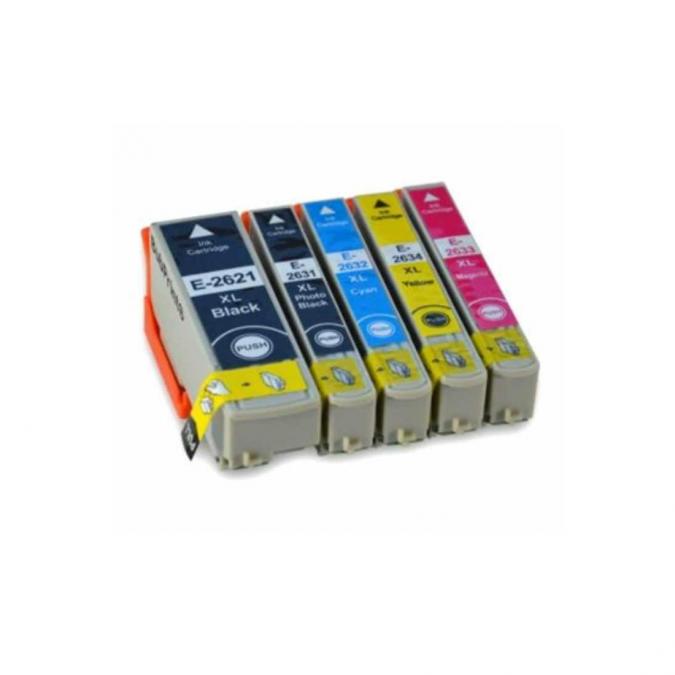 Pack de 5 cartuchos compatibles de tinta Epson T2621, T2631, T2632, T2633 y T2634