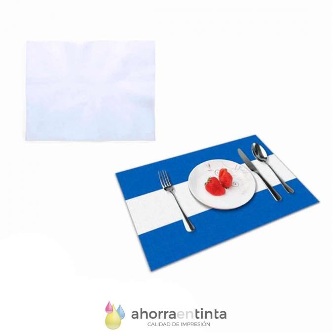 Salvamantel de non-woven en color blanco, especialmente diseñado para impresión en sublimación.