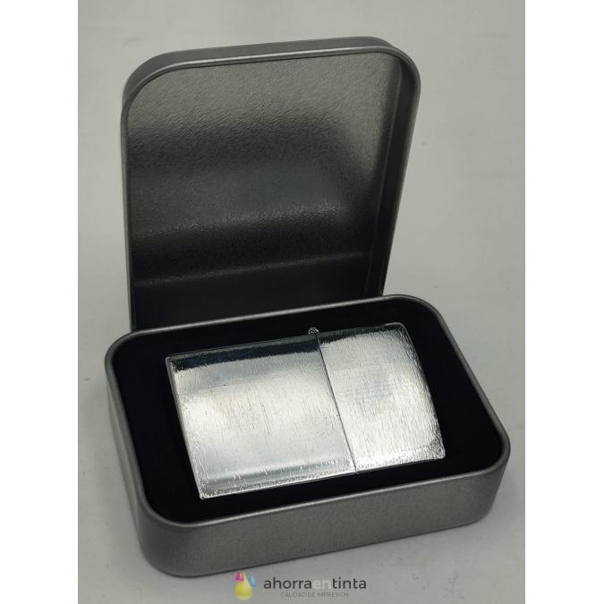 Los mecheros vienen en blister de carton con caja metalica sin gasolina.