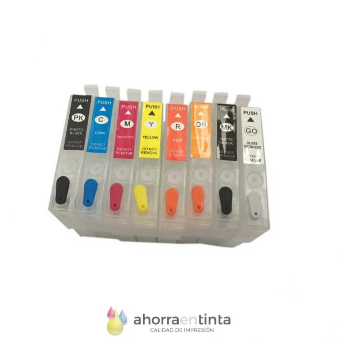 - Pack de 8 cartuchos colores PBK-C-M-Y-GO-R-OR-MBK