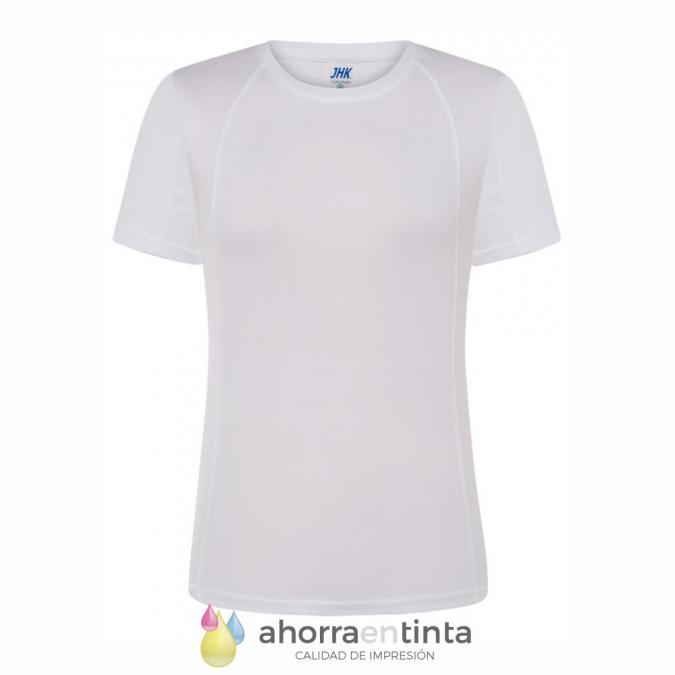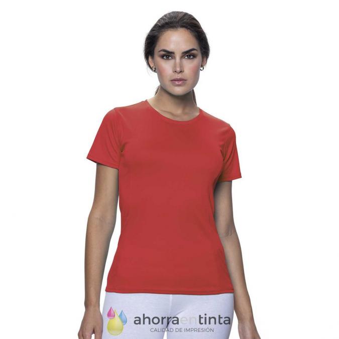 Camiseta para adulto en material 100% poliéster transpirable de 140g/m2 con textura de algodón.
