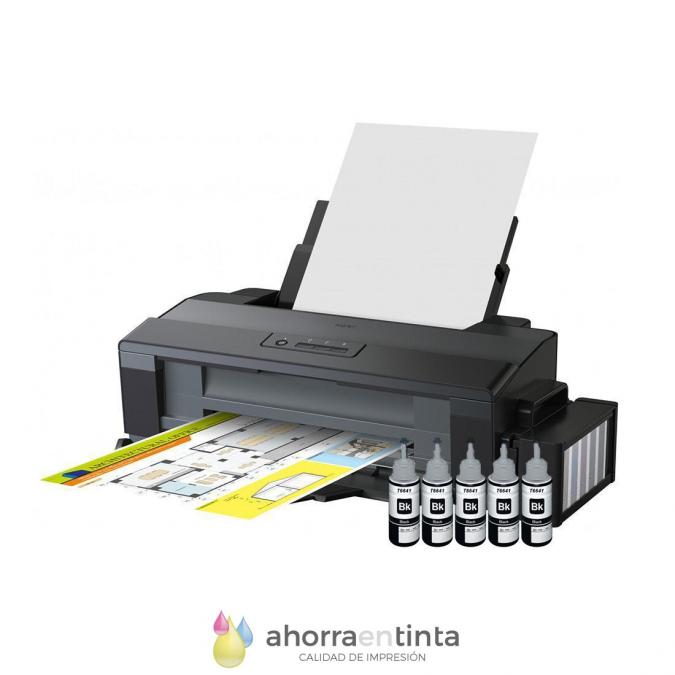 - 5 botellas de TINTA NEGRA ORIGINAL de 70 ml Epson 6641W NEGRA para EPSON Ecotank L1300, con fácil recarga