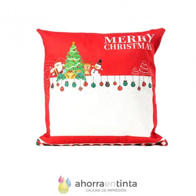 Funda de almohada en Poliester 100% con motivos navideños preimpresos y una zona en blanco para sublimar