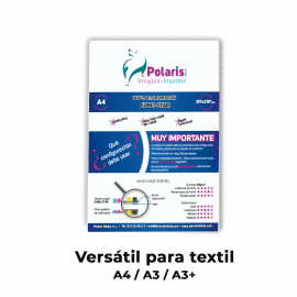 Con la nueva formulación del papel POLARIS TERRA hemos conseguido una versatilidad mayor, obteniendo los mismos excelentes resultados para superficies porosas como camisetas, alfombrillas, bolsos, ....,