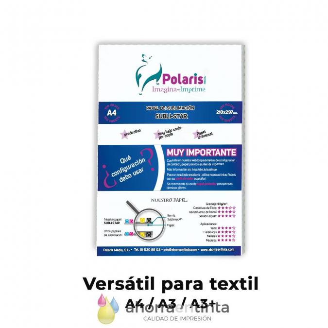Papel Sublimación Polaris TERRA para TEXTIL, 100 Hojas, formato a elegir nueva composición mejorada para textil, 85gr. para impresoras Epson para sublimar sobre todo tipo de artículos de sublimación de fondo blanco o color claro.
