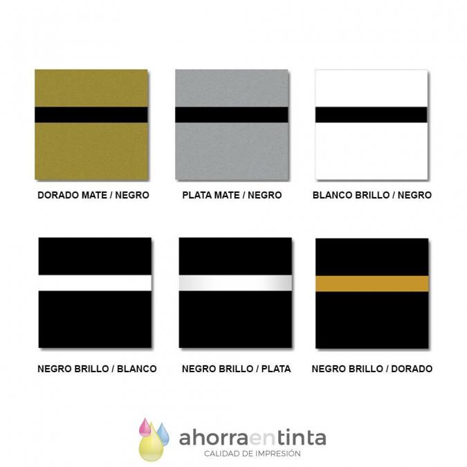 Colores a elegir: Plata mate, Dorado mate, Plata satinada, Dorado Satinado, Cobre Satinado, Plata perla y Dorado perla.