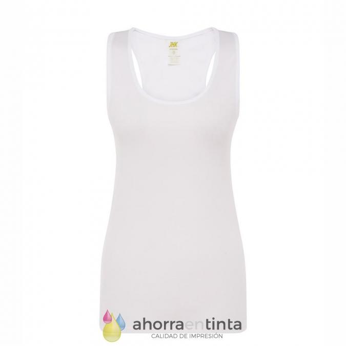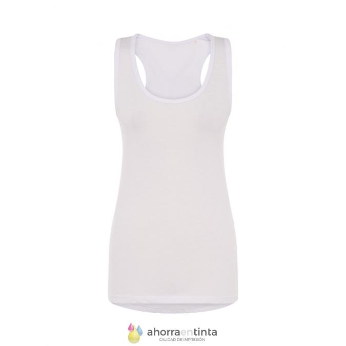 Camiseta de tirantes para mujer especial para sublimar. 100% poliéster. Tacto de algodón. Etiqueta TearAway.