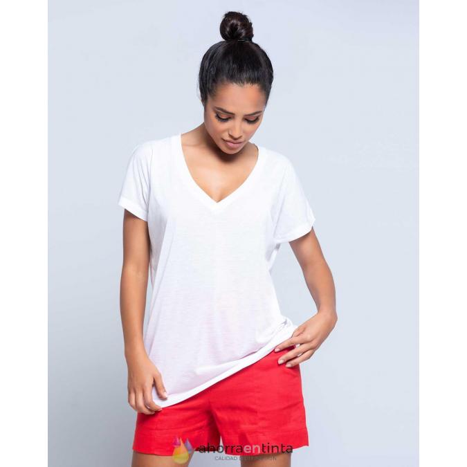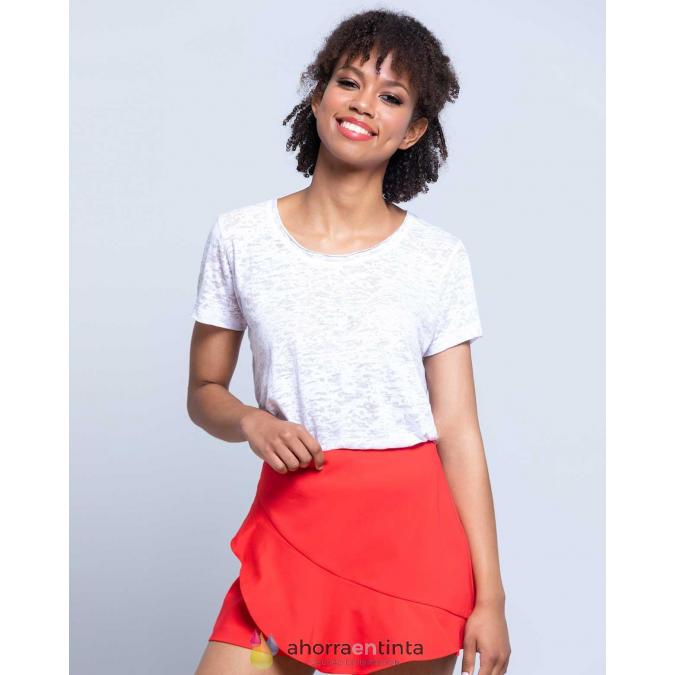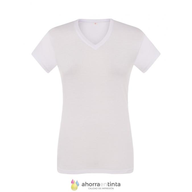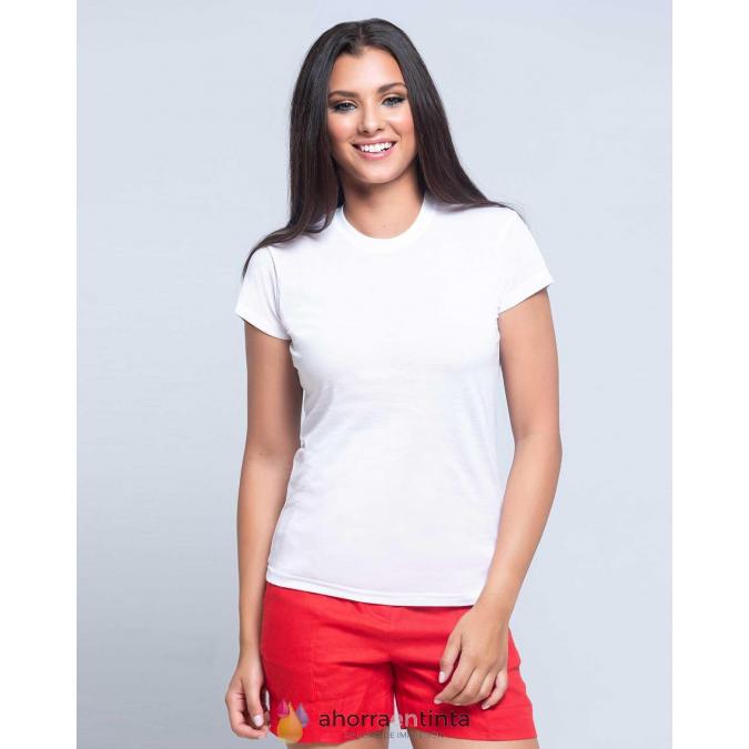 Camiseta de mujer de manga corta para sublimar. Tacto de algodón. Etiqueta removible.