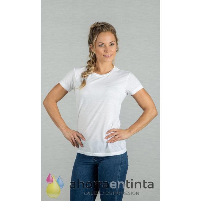 Camiseta de mujer de manga corta para sublimar. 100% poliéster. Tacto de algodón. Etiqueta removible.