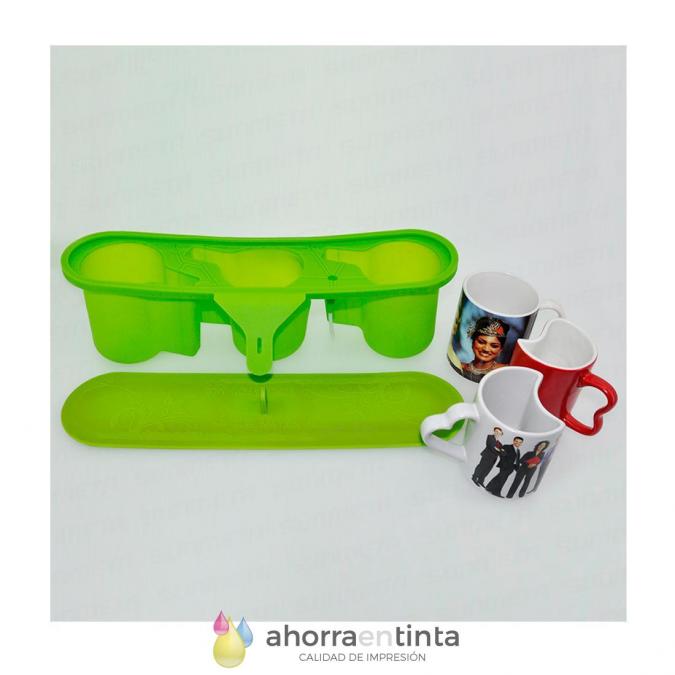 Molde de silicona para introducir a la vez hasta 3 tazas tamaño estandar 11oz en su horno 3d de sublimación.