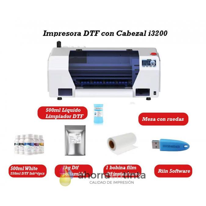 Este pack con doble cabezal I3200 ahorrara tiempo frente a las impresoras modificadas, ya que le permitirá alcanzar mayores niveles de productividad y calidad en la impresión de transfer sobre film DTF.