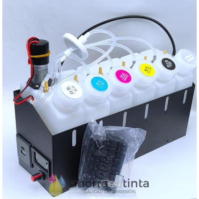 Con este kit puedes tener un control mas preciso de tus impresoras modificadas para dtf, con su sistema independiente de recirculacion y movimiento del tanque blanco junto con los depositos cmyk mas el tanque de desechos externo.