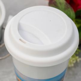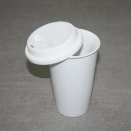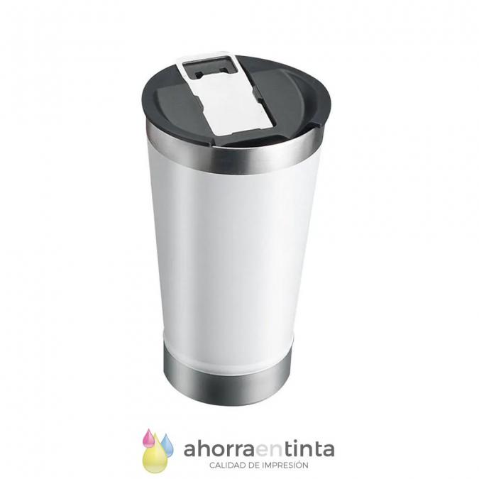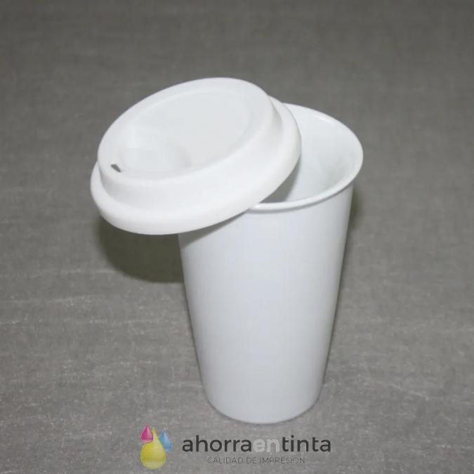 Vaso térmico de cerámica ecológica blanca sublimable forma cónica de 300 ml con tapa de silicona