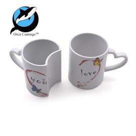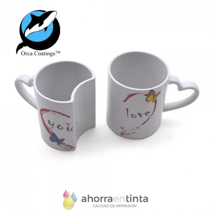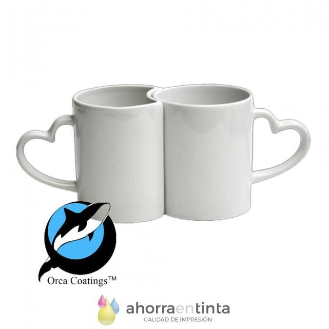 Juego de dos tazas de cerámica gemelas blancas adaptables para sublimar
