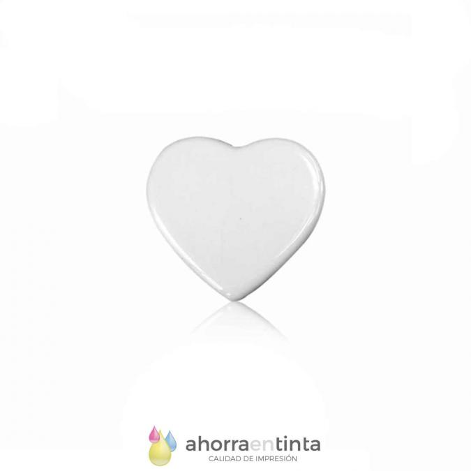 Cerámica blanca en forma de corazón con borde redondeado con reverso de imán, para sublimar.