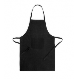 Delantal largo negro multiusos, fabricado en Algodón 65% 35%Poliester , resistente y duradero. Con tirante fino para colgar al cuello y atar en la espalda. Incluye un amplio bolsillo central.