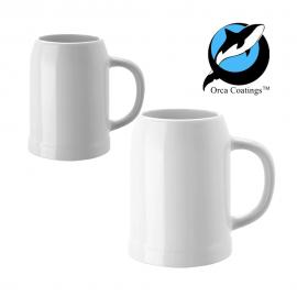 Jarra de cerveza de cerámica blanca para sublimación disponible en dos medidas de capacidad diferentes:
