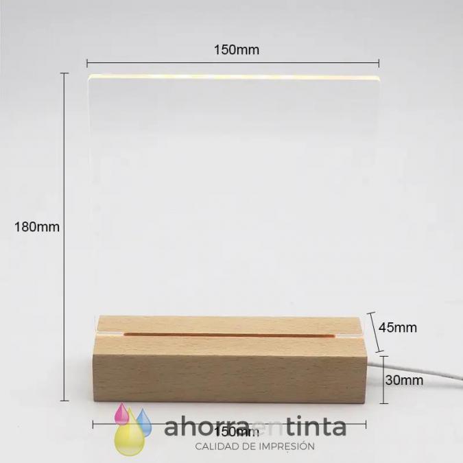 Base rectangular de madera led con metacrilato para que la puedas personalizar con tu laser, vinilo, etc. ...