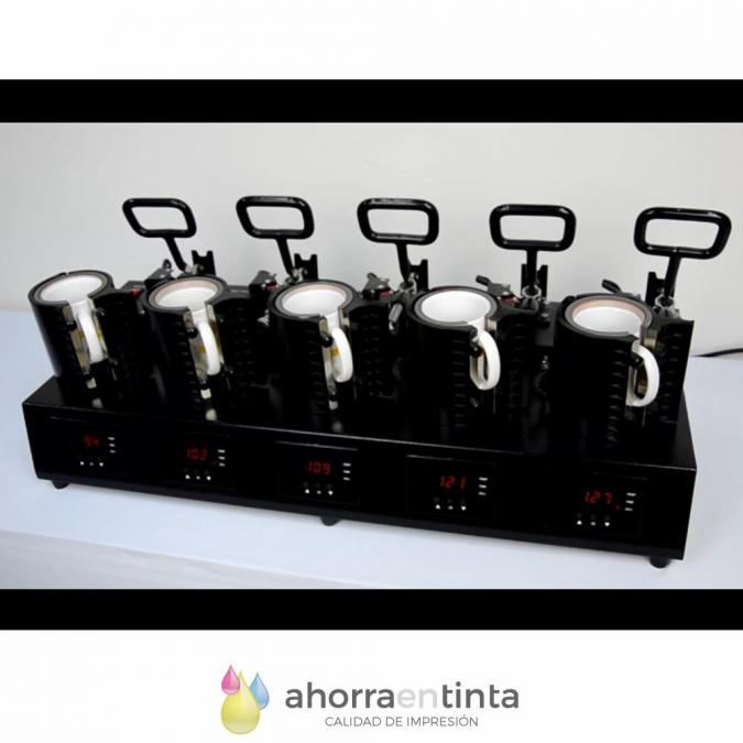 Prensa múltiple para 5 tazas con control independiente de tiempo y temperatura.