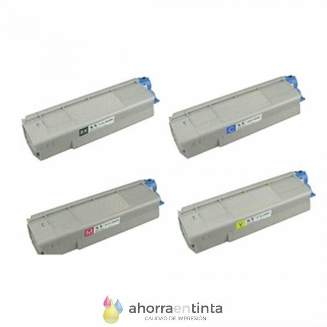 OKI C5650 OKI C5750, Pack 4 cartuchos de tóner compatible con OKI, 4 colores