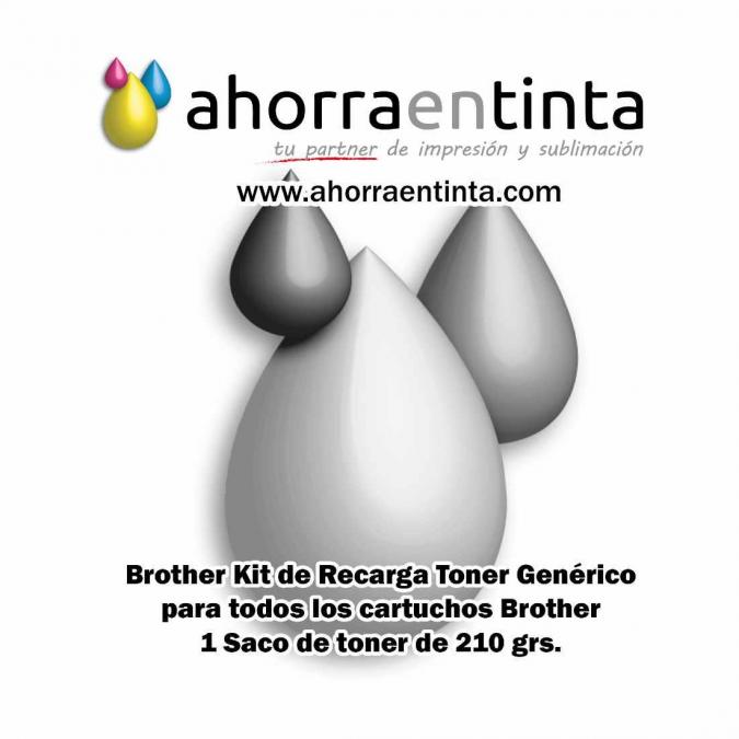Brother Kit de Recarga Toner Genérico para todos cartuchos Brother Monocromo, 1 Saco de toner 210 Gr. Contenido: