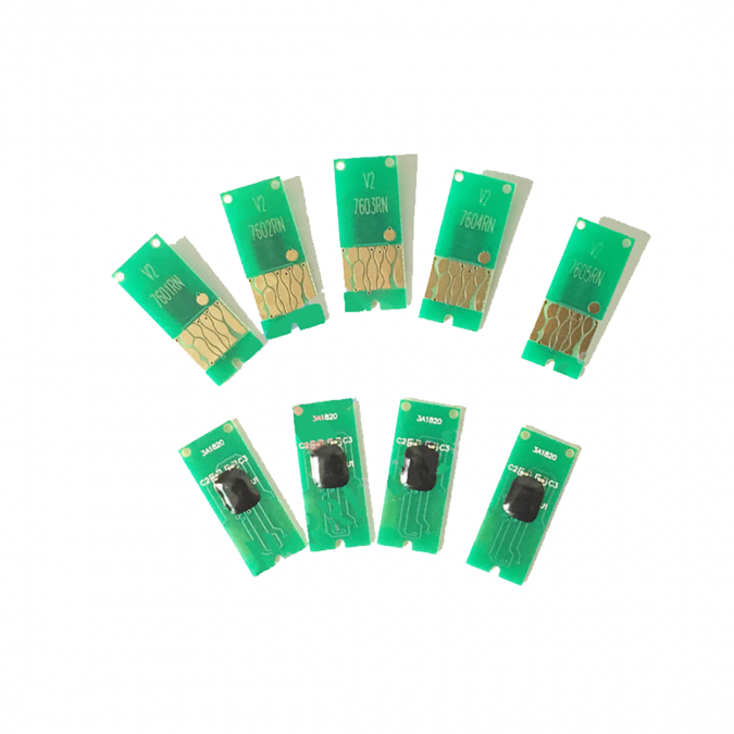 La mayoría de los cartuchos y tanques de mantenimiento para impresoras inkjet de reciente fabricación llevan incorporado un chip electrónico. Su codificación es especifica para cada referencia de cartucho y color del mismo, evitando así que un cartucho en concreto pueda ser utilizado en diferentes impresoras para las que ha sido fabricado y en la ubicación de un color diferente al suyo.