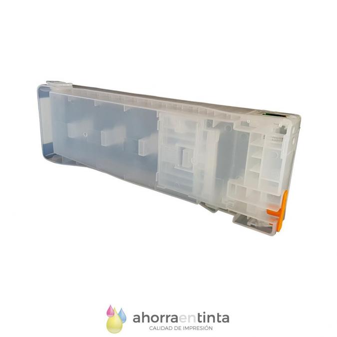 Cartuchos recargables transparentes vacios con chip de un solo uso y 700ml de capacidad cada uno.