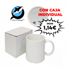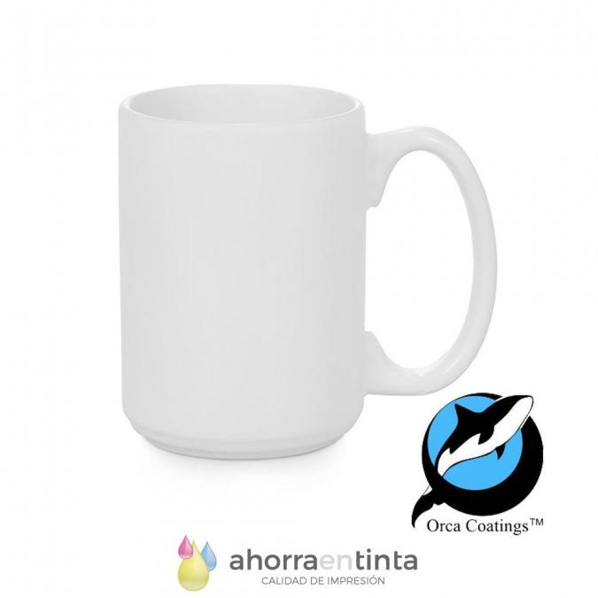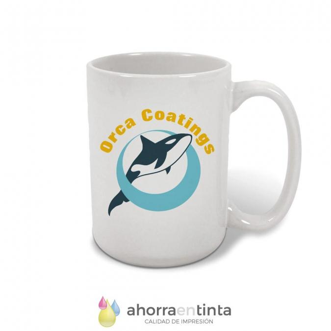 Taza de cerámica "Orca Coating" blanca capacidad 440ml para sublimación.