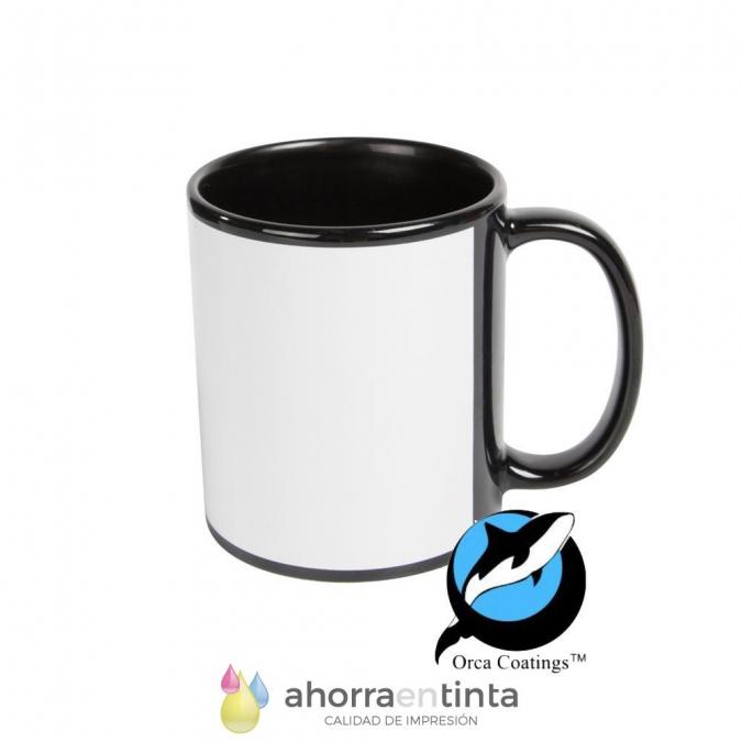 Taza Negro completo con recuadro parche banda blanca para sublimar