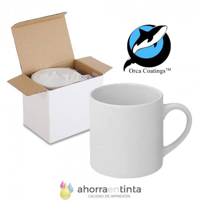Taza de cerámica "Orca Coating" blanca capacidad 180ml para sublimación.