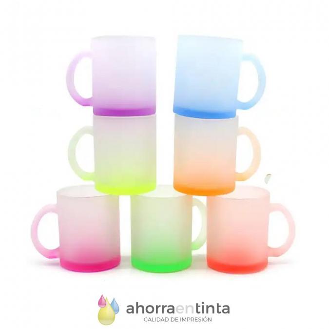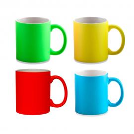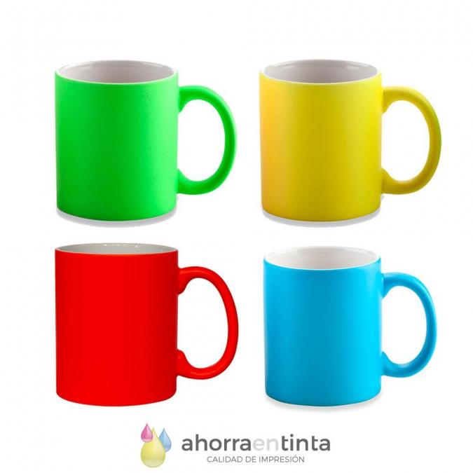 Tazas colores neón de gran intensidad acabado mate personalizables mediante sublimación