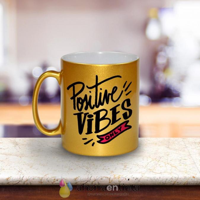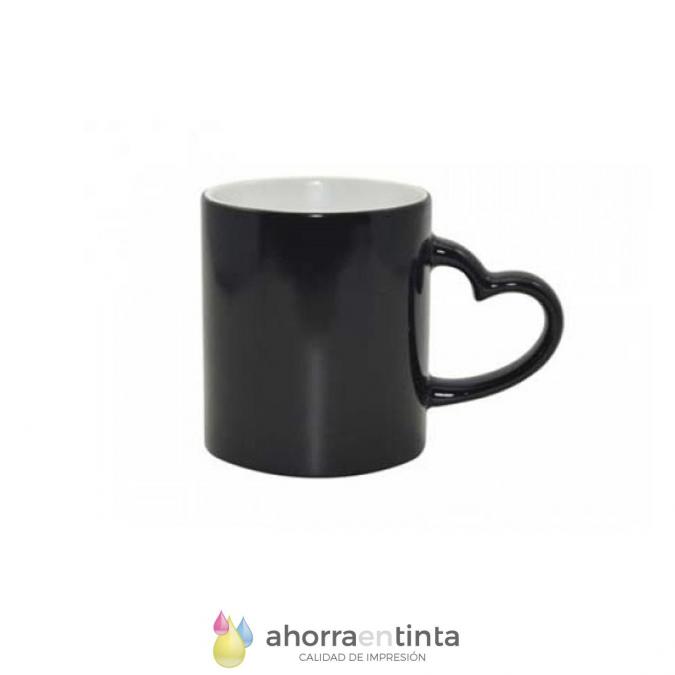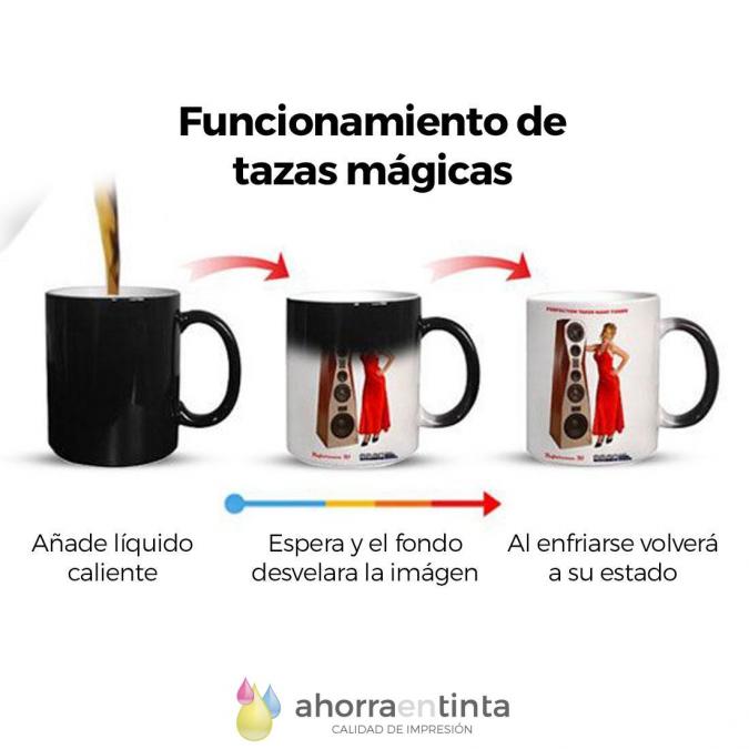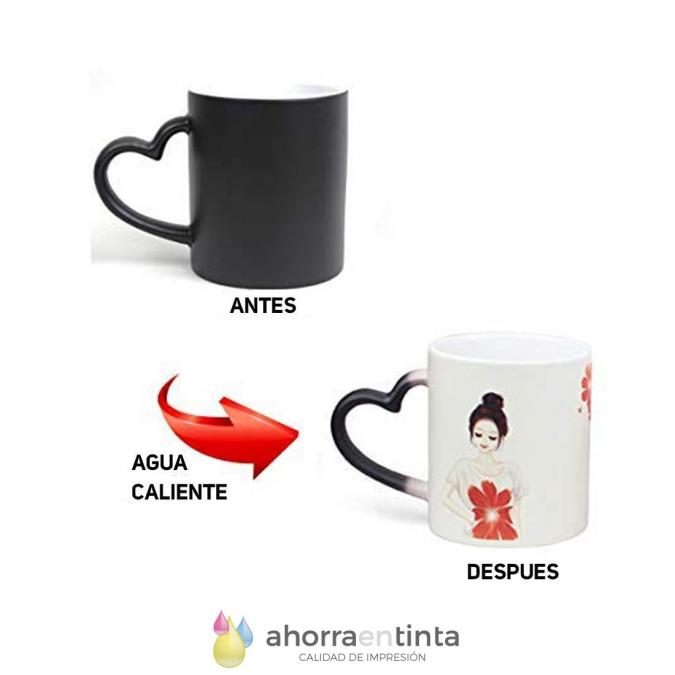 Taza de color sublimable que oculta la imagen en frio y la enseña cuando se vierte sobre ella liquido caliente